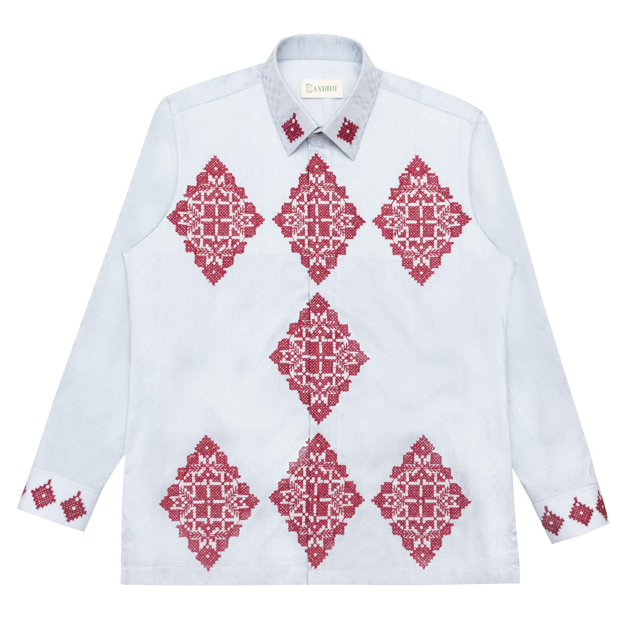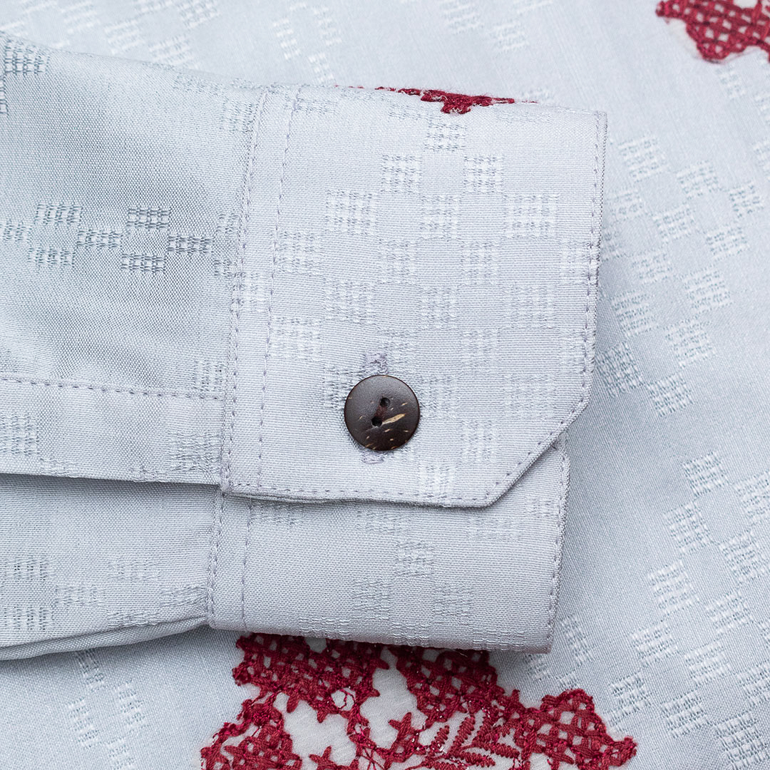 The silver color harmonizes beautifully with lace patterns. The making of this shirt demands meticulous craftsmanship, with a production time of 7–10 working days